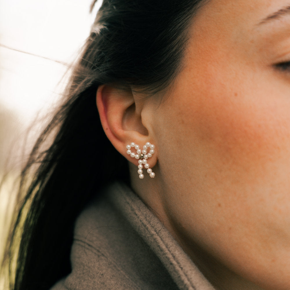 Cute pearl bow - OORBEL
